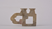 名称:汉玉带饰 时代:汉 分类:杂项 尺寸:通长6.6、通宽5.5、通高0.4cm...