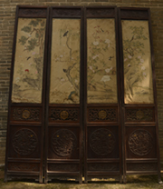 清镂雕裙板纸质画心木屏风