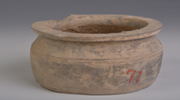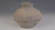名称:汉弦纹平沿束颈灰陶罐 时代:汉 分类:陶器 尺寸:口径16.6、底径15.0、通高9.1cm...